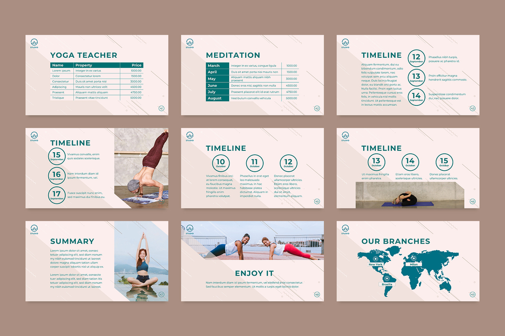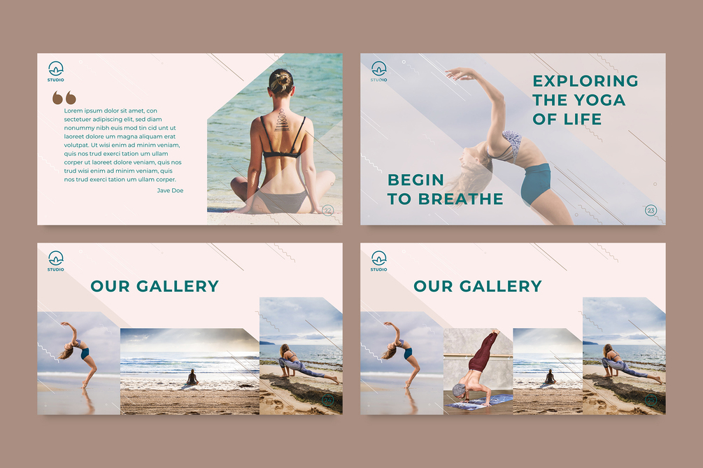 A calm and professional PowerPoint template designed for yoga instructors, fitness studios, and wellness businesses.