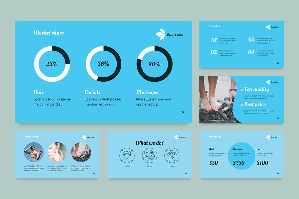 A calming and elegant PowerPoint template created for spa salons, wellness centers, and beauty professionals.