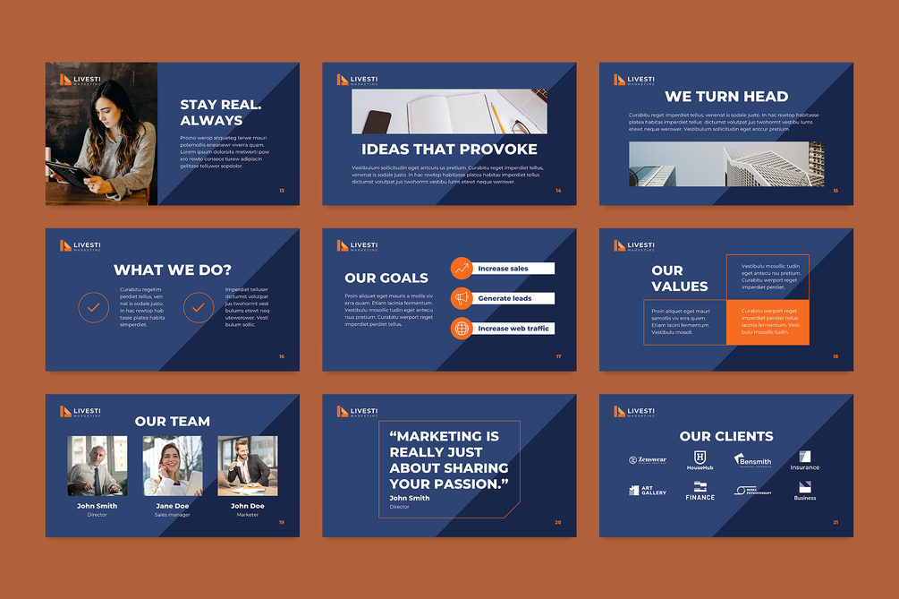 A modern and professional PowerPoint template created for marketing agencies, digital consultants, and creative teams.